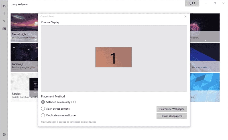 La compatibilidad con múltiples pantallas permite a los usuarios extender un fondo de pantalla exclusivo a varias pantallas. Ofrece ajustes automáticos de fondos de pantalla al cambiar la configuración del monitor. Es posible que cada pantalla tenga el mismo fondo de pantalla o fondos de pantalla diferentes que se pueden duplicar en todas las pantallas. Puede ajustar la calidad del video con la compatibilidad con resoluciones HiDPI y Ultrawide. Un atractivo conjunto de API permite a los desarrolladores diseñar fondos de pantalla interactivos. Puede acceder a información del sistema, gráficos de audio e información musical. Puede configurar el fondo de pantalla para varias pantallas siguiendo las instrucciones.